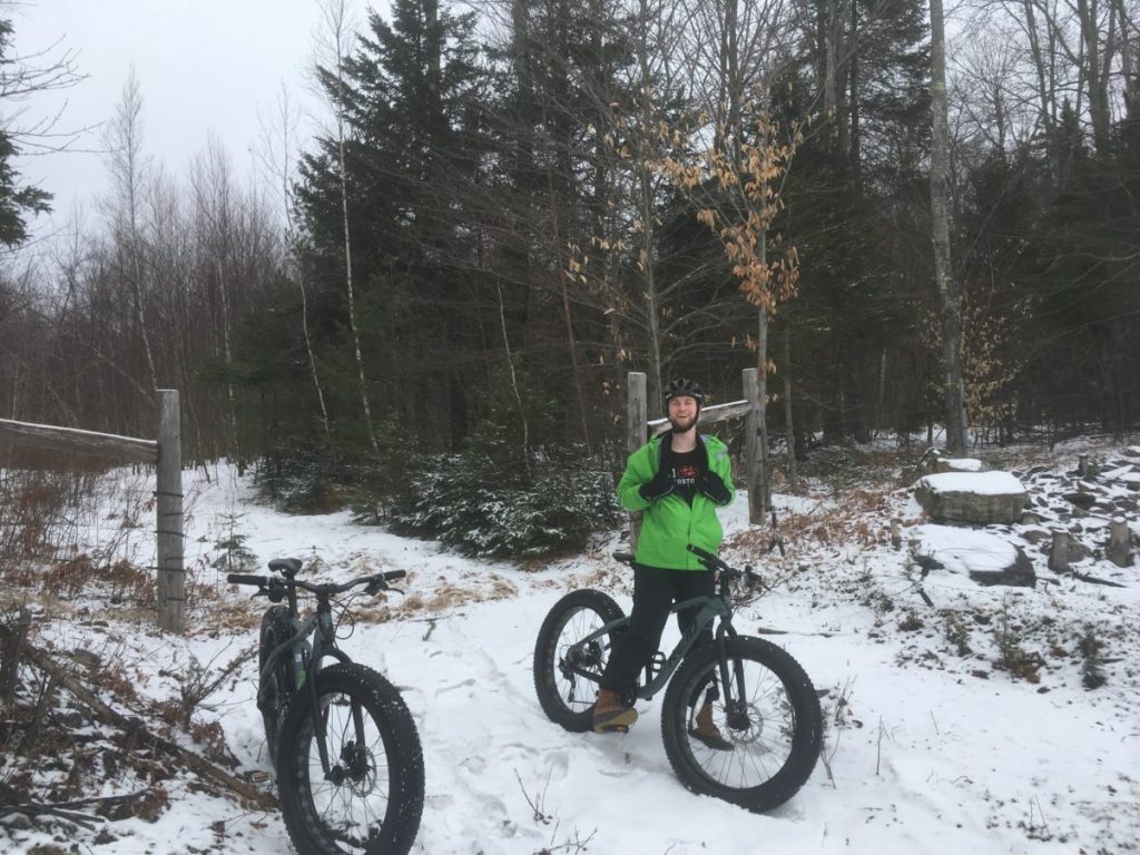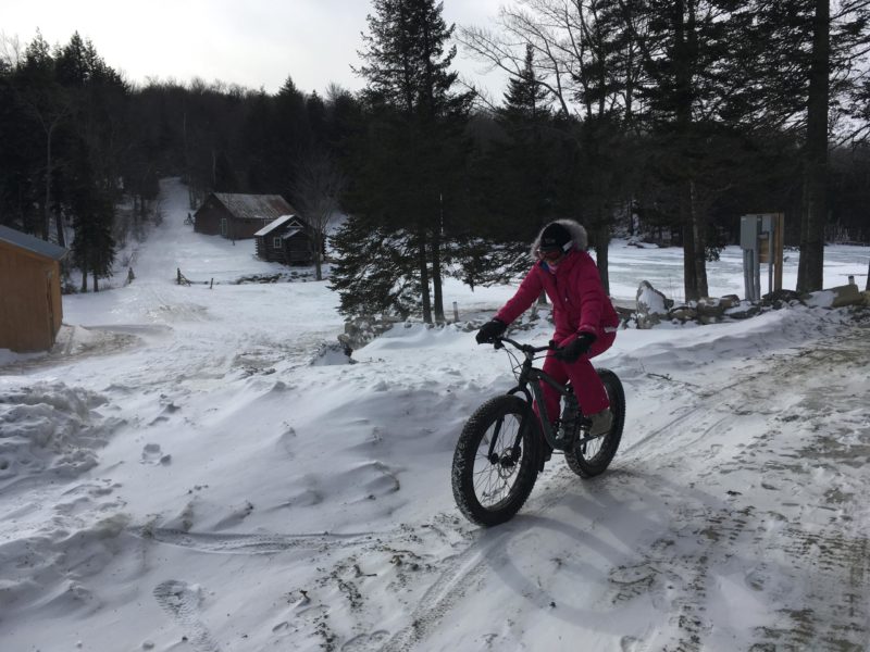 Great question! Biking in the snow is a special experience (and one of your blog writer’s favorite things to do). A little patience goes a long way, biking in the snow. You want to get into a nice low gear and “soft pedal” through the slushy stuff. Keeping the pedals turning will help you balance and stay upright. Studded tires are great for when it’s icy, but for snow-snow, nothing beats a fat bike: