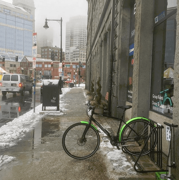 Just because the weather outside is frightful doesn’t mean riding a bike isn’t still delightful! All you need is the right equipment, a positive attitude, grit… and a flat kit probably wouldn’t hurt, either! All winter long the shop is still open serving Boston’s growing bike commuter community, and we still happily run tours for the brave of heart. And while, yes, it can sometimes be hard to face a 5-mile commute into work on a day when it’s somehow raining, snowing, and sleeting all at the same time, we think it still sure beats sitting in traffic.